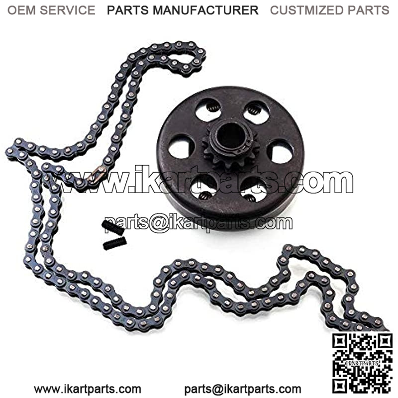 You Will Get: 1 x 12 teeth centrifugal clutch1 x #35 chain Go Kart Clutch kit includes two set screws and chain. Recommended to always use bolt and washer on end of crankshaft to hold clutch securely onto the shaf