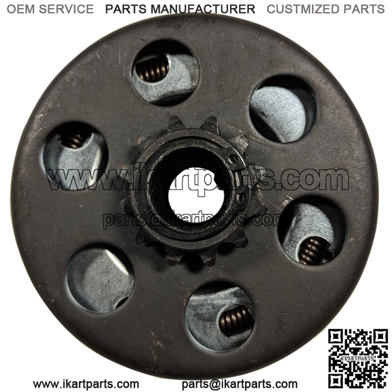 Product DescriptionCentrifugal Clutch 3/4″ Bore #35 Chain 12 Tooth Go Kart Mini Bike Drift TrikeKnow your gear ratio! An acceptable gear ratio for a 12T #35 clutch would be a 60T or larger rear sprocket. A 10T #41 clutch would need a 50T or larger rear sprocket. Vehicles with rims larger than 6″ or tires with a diameter of 15″ or larger should upgrade to a belt drive TAV system. Gear ratios outside of these recommendations voids any warranty.Clutch:Shaft size: 3/4″ BoreChain Size: #35 ChainTooth Count: 12 ToothEngagement is Approximately: 1800-2200 RPMsReplace your worn our clutch with this affordable item. Can be mounted inboard or outboard. Has key stock. Does not come with set screws. Fits the following motors and many others:Honda GX160 Honda GX200Harbor Freight Greyhound 196ccHarbor Freight Predator 212ccNearly all 5.5 HP clones Nearly all 6.5 HP clonesNearly all 4-7HP motors, all brands.PLEASE MEASURE YOUR CRANKSHAFT TO BE SURE!