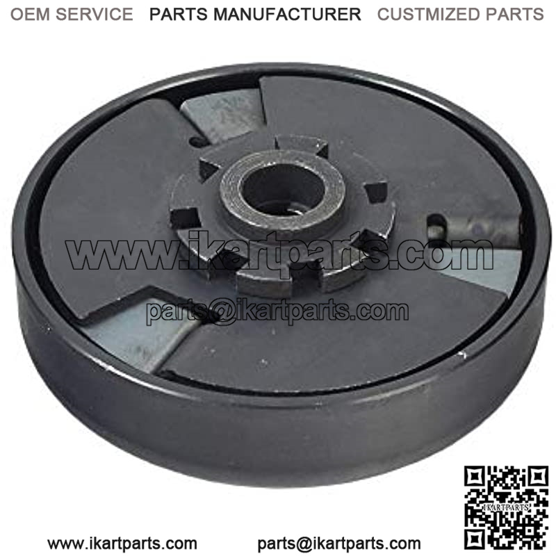 Fine replacement clutch for the Coleman CK100 and SK100 go-karts. 5/8 inch shaft bore. 4-1/4 inch diameter. Part number: X98-8193
