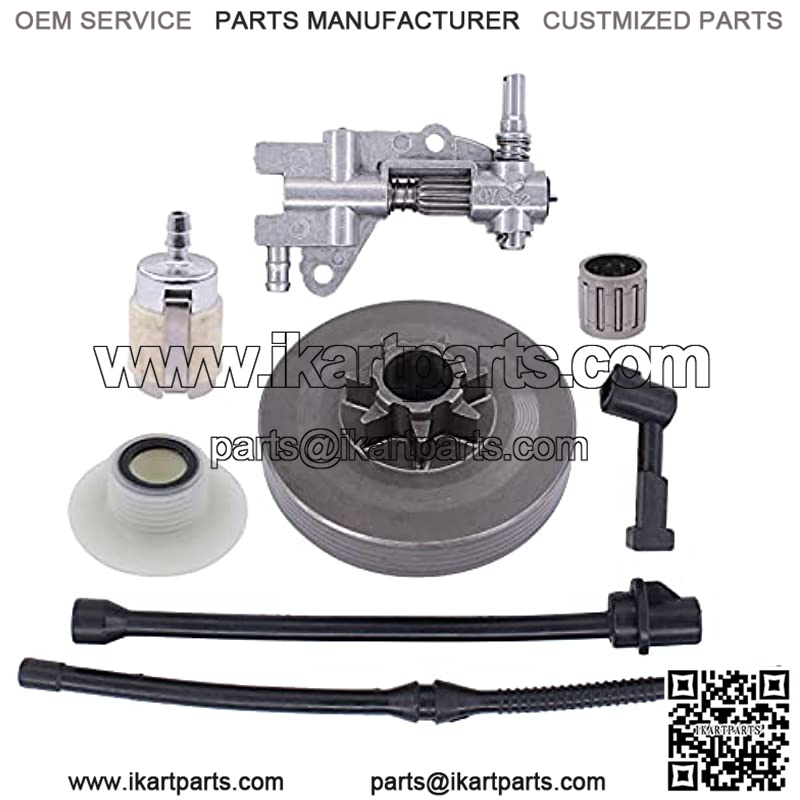 Clutch Drum .325 7 Tooth with Oil Pump and Worm Gear Fuel Filter Hose Kit for Chinese Chainsaw 4500 5200 5800 45cc 52cc 58cc