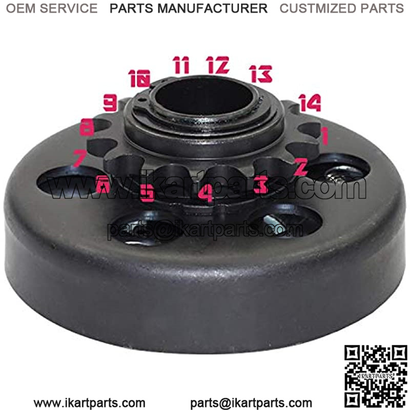 Clutch 1″ Bore 14Teeth Perfect for Go Kart Mini Bike. (Chain Size: #40/41/420) This clutch is used primarily on Mini Bikes and Go Karts,Just the thing for a big go-kart or mini bike! Our clutch assembly with 1″ shaft and 14 tooth 40/41/420 chain sprocket just may be the perfect missing item for your serious garage project go-kart. The 1″ bore allows this clutch to work with gas engines larger than 6.5 Hp. In addition, the 14 tooth drive sprocket is made for use with the common 40/41/420 chain size.