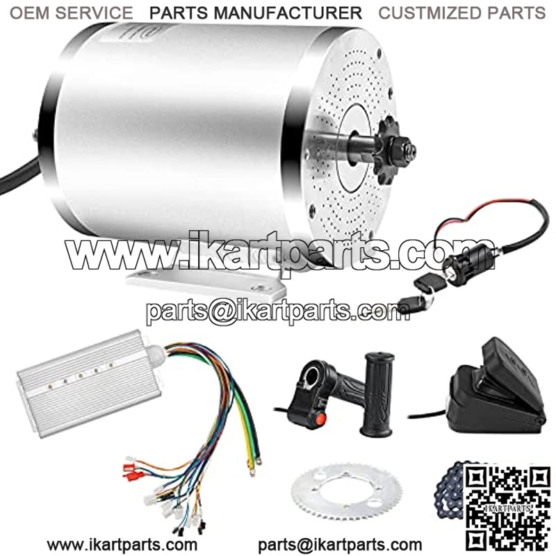 Package Include: 72V 3000W Motor*1pc, BLDC controller 50A*1pc, 3 speed handlebar throttle*1 pair, foot throttle*1pc, Ignition Lock*1pc, T8F Sproket*1pc, T8F Chain*1pc, Manual*1pc (Note: without battery). Product Description