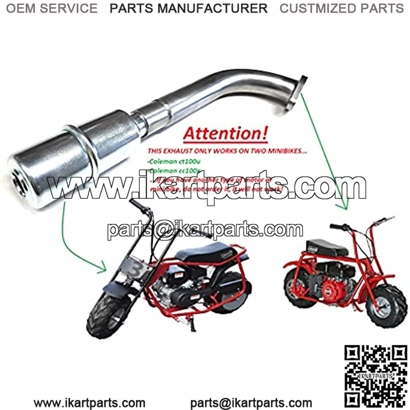 This is custom made Exhaust With Muffler, It is separated into two pieces. ” tested on Coleman ct100u & cc100x Mini bike only. Not work on any other minibike.