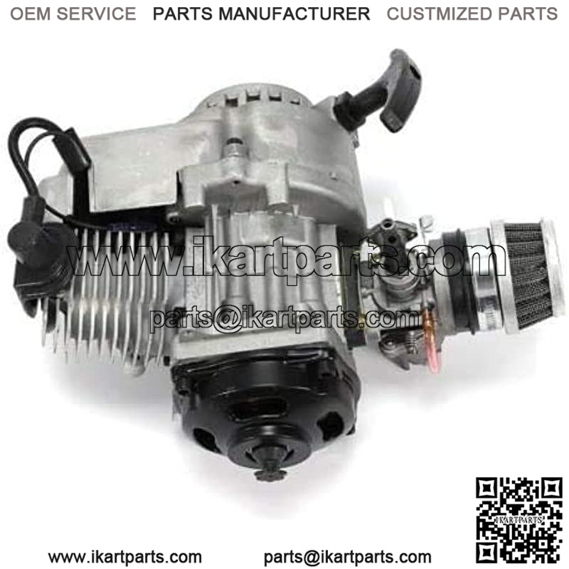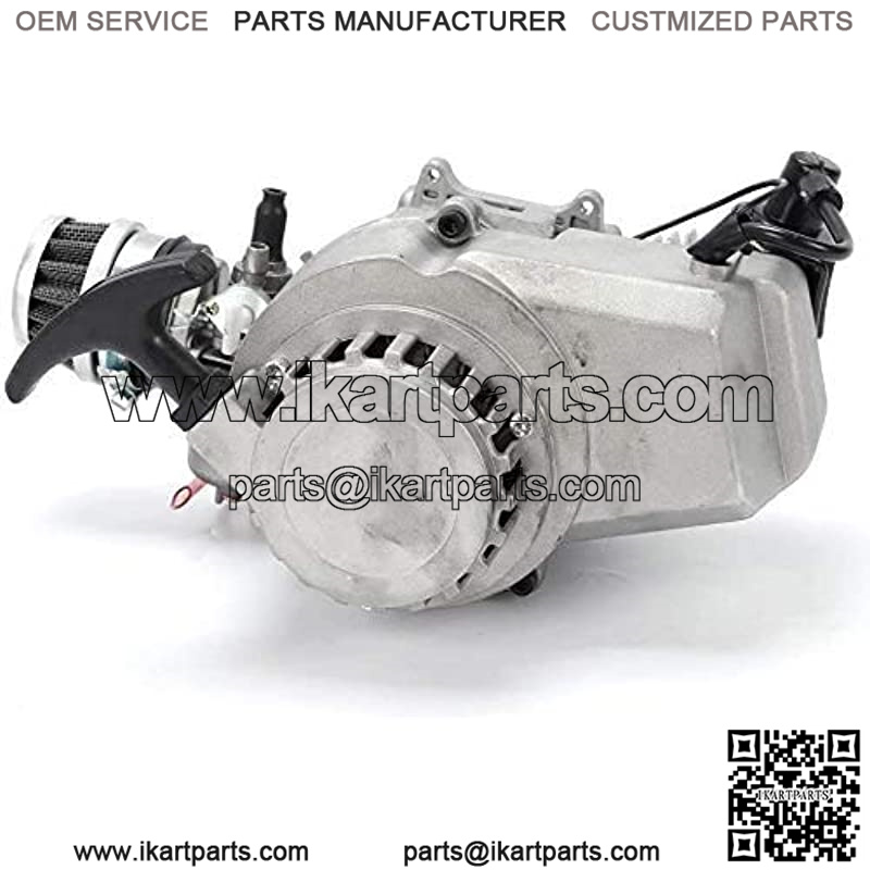 Specifications:Engine Size: 49ccGear System: Centrifugal ClutchWeight: 3.2kgDimension Of Engine: 250mm X 220zmmBottom Mounting Distance (Width): 85mmBottom Mounting Distance (Length): 67mmFits: Pocket Bike, Mini Dirt Bike, ATV or ScooterIgnition: CDIDisplacement: 49CCStart Mode: Hand pull starterType: Single cylinder, 2-stroke with air-cooledClutch: Wet multi-plate