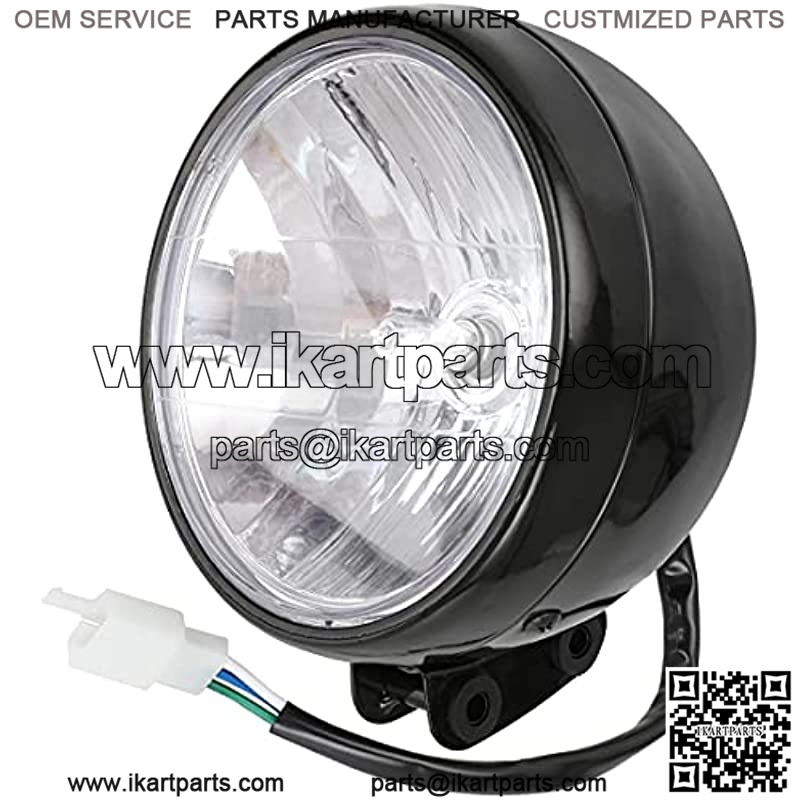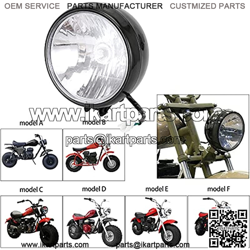 Front Headlight head Lamp Assembly for Massimo MB200 Hensim TrailMaster Baja Heat WarriorMB165 MB200 BT200X CT200U-EX 196cc 6.5HP Mini Bike Motorsports 12 Volt 35 Watt 3 Wire Black