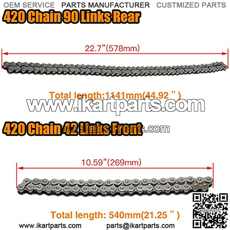 FVRITO Front Jackshaft 420 Chain 42 Link and 90 Link Rear Drive Chain for Coleman CT200U Trail 200 BT200X CT200U-EX Baja Heat Warrior Trailmaster Massimo MB200 MB165 196cc 212cc 6.5HP Mini Bike Parts