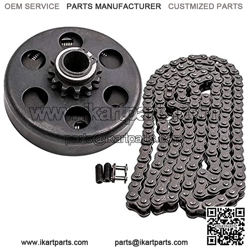 Fits for 2 – 6.5HP engines for HONDA GC160, GC190, GX120, GX140, GX160, GX200. Shaft Bore: 3/4″ Shaft and 3/16″ Key way. Size: 3/4″ go kart centrifugal clutch chain screw; Tooth:12T. Package Contents: 1 X Centrifugal Clutch; 1 X Master Link. Note: Clutch mounts on the crankshaft using the bolt and washer on the end of the crankshaft (bolt and washer isn’t included).