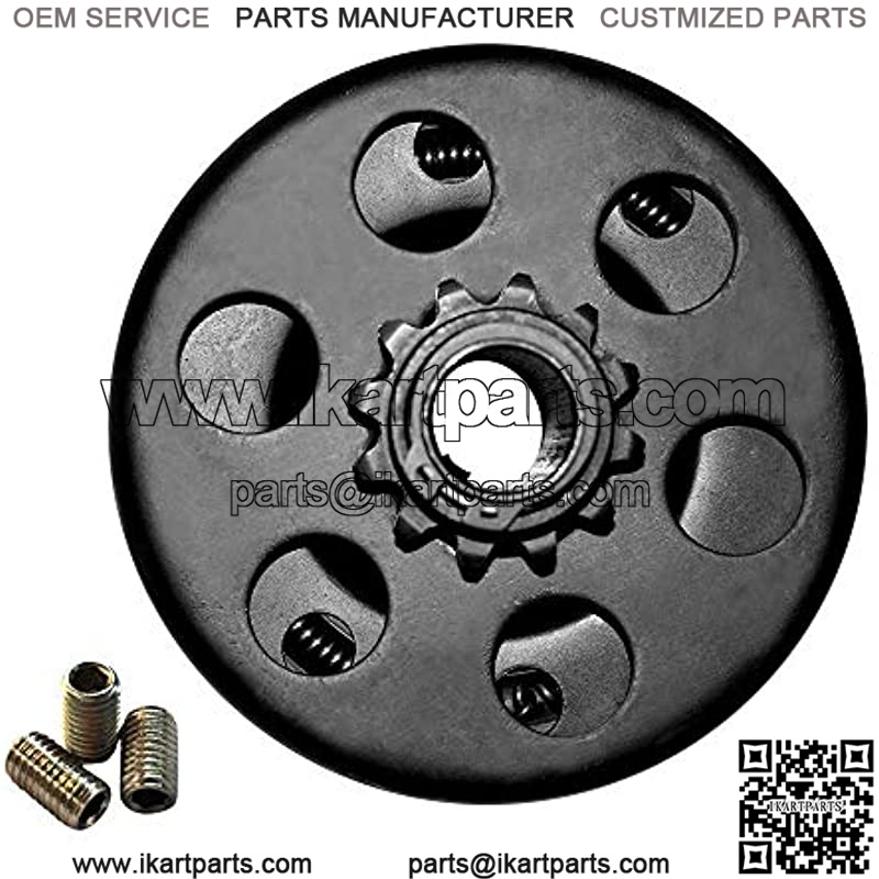 Here is the DEDC Centrifugal Clutch 3/4 Bore 12T, Go Kart Clutch Bike Clutch for 212 CC Mini Bike Fun Kart GX160 GX200, Up to 8 HP Chain Model 35 Why do you need a centrifugal clutch replacement 1 Optimize kart or bike starting 2 Make shifting gears easier and smoother, without damaging 3 Prevent damage from over-pressure on powersports transmission part 4 Reduce torsional shock Technical Parameter: 12 tooth Horse Power up to 8 HP Chain Model #35 Inner Bore 3/4?? Keyway 3/16?? Engagement Speed 2000??100 RPM Clutch Height 54.5mm Outer Diameter 107mm Works with 15 inch tires. Perfect for: Go Kart, Mini bike, Fun Kart, GX160 GX200 Harbor Freight Greyhound 196cc Harbor Freight 212cc, Nearly all 5.5 HP clones Nearly all 6.5 HP clones Nearly all 4-7HP motors, all brands.