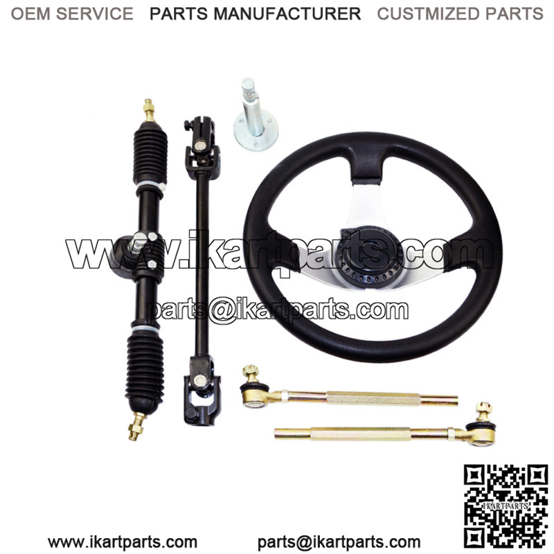 This is the 110 cc Go Kart steering wheel assembly set includes tie rod, steering rack and adjustable shaft.