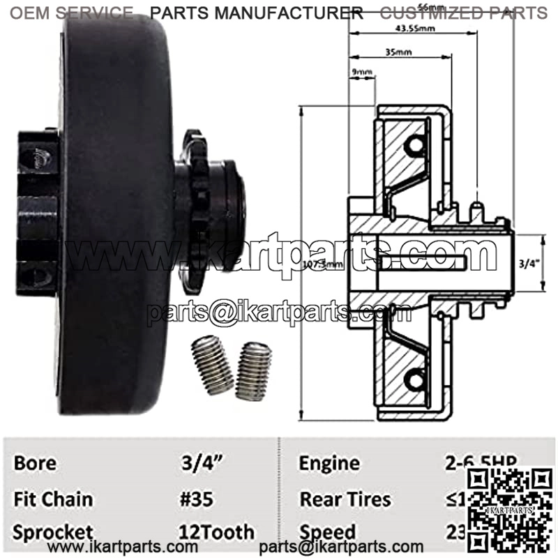 Go Kart Minibike Belt Direct Drive Fun Kart Centrifugal Clutch 3 4 Bore 12 Tooth #35 Chain