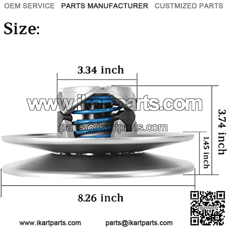 Aftermarket drive clutch assembly kit for Club Car Fit Club Car DS & Precedent 4-Cycle gas vehicle 1997-up golf cart with FE290, FE350 & FE400 engines Replace part OEM No.# 101834001, 5701 Provide for a more smooth ride after directly replaced a worn driven clutch The kit includes assembled clutch, heat-treated center shaft and balanced sheaves and spring