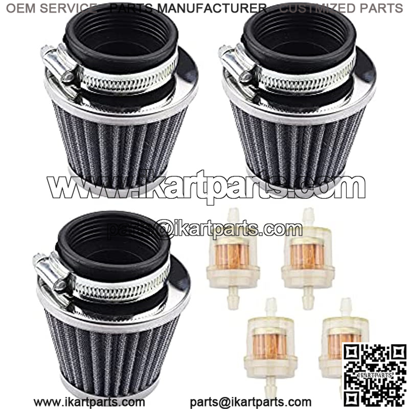 GY6 42mm Clamp-On Air Filter Pod Compatible With GY6 125CC Taotao 150CC Air Intake Dirt Bike CB/CG 200CC 250CC Yerf dog Go Kart Parts (Pack of 3)