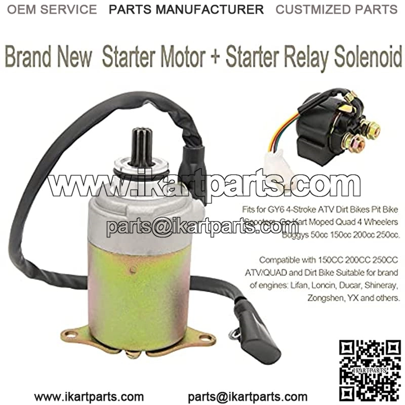 [Compatible Models] Gy6 starter fits for GY6 50cc 125cc 150cc 200cc 250cc 4-Stroke Chinese scooter ATV tao tao Dirt Bikes Go Karts engine; for Moped Quad 4 Wheelers Taotao SUNL Baja Icebear Roketa Jonway; Motor Starter For 152QMI 157QMJ engine motors. Starter Solenoid Relay for Honda Clones 50cc, 70cc, 110cc, 125cc, 250cc etc??also fits for Chinese made 50cc 70cc 90cc 100cc 110cc 125cc ATV, Dirt Bikes, Scooters Go Kart Pocket Bikes Chopper