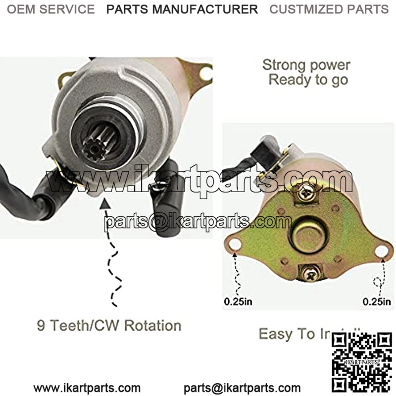 [Specification] Unit Type: Gy6 Starter; Voltage: 12V; Rotation: CW; Teeth: 9; Starter Type: PMDD. Replaces oem part number: 35850-286-007,35850-286-027,35850-286-017,35850-375-000