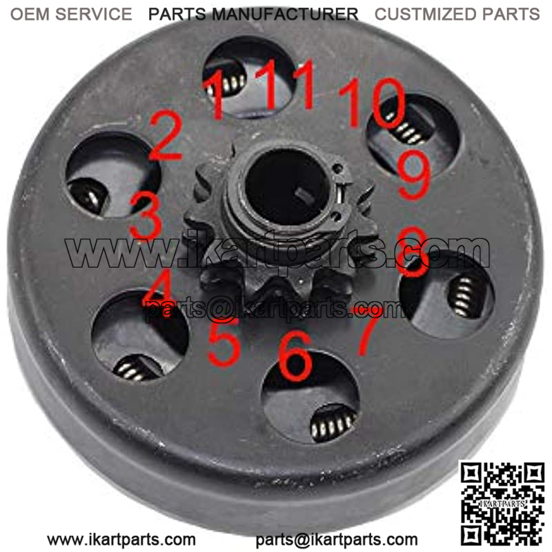 Go Kart Mini bike Centrifugal Clutch for Go-Karts, Riding Mowers, Snow Throwers (5/8″ Bore 11T) Specifications:Bore diameter: .625 inches (slightly smaller than a DimeFits:Centrifugal Clutch 11 tooth, 5/8″ bore,use 35# chainPredator 2.8 HP 97cc engine, some older 3hp engines Engines with 5/8 inch (.625 inch) output shaft with standard keyway Set Screws NOT Included. Mounts onto crankshaft using bolt and washer on the end of the crankshaft. 97cc 2.8 Hp Mini Baja Motorsports Mini Bike 11 Tooth & 5/8″ Bore Clutch Assembly