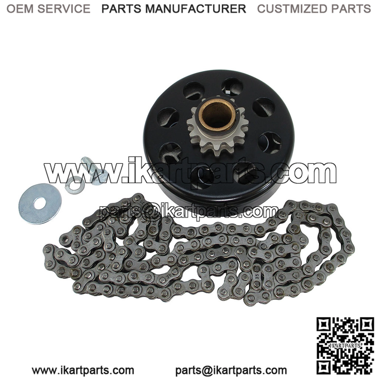 Product DescriptionGet your go kart or mini bike up and running with this upgraded clutch and chain set! (1) 3/4″ Bore #35 Chain 12 Tooth Clutch (1) 4′ length of #35 chain *Includes required crankshaft bolt for most motors.* Packaging removed for shipping. Rated up to 13HP (4 stroke) 2300 RPM Engagement Replaceable Sprocket Hilliard’s new patent pending Extreme Duty centrifugal clutch can handle higher temperatures to offer longer clutch life. * Bi-Directional, can run clockwise & counter clockwise. * Disates heat better, extending clutch life. * Clutch is easily tuned for your specific need. * Quick change spring and sprocket design. * No special tools needed. * Built-in internal keyway. Hilliard’s Extreme Duty – 3/4″ 12 Tooth #35