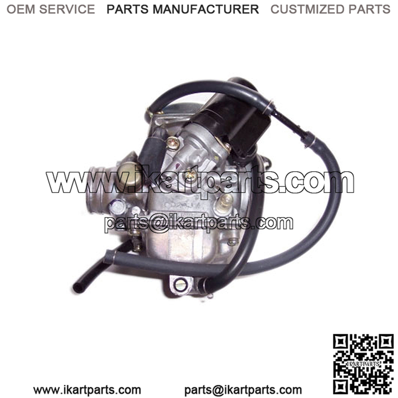 This carburetor with electric choke is compatible with the Spiderbox GY6 150cc engine. May also work with other go karts, scooters, & ATVs.