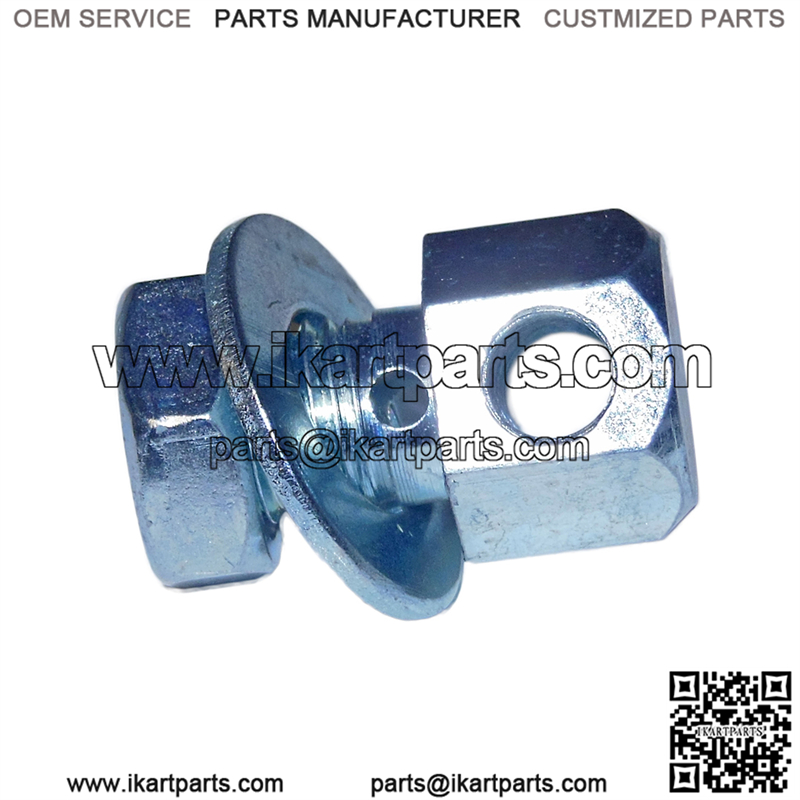 This rod and cable coupler is a trick way to fasten a cable (3/64″, 1/16″, or 5/64″) to a control rod. Its hex head has a 1/4-28 through threaded hole to fit our throttle rod, and on a paralled axis, a 2mm drilled hole for the cable end. Secure the cable with a 3/8-24 jam nut and a 3/8″ flat washer, and there’s no need to bend or loop the cable where it’s attached to the rod.