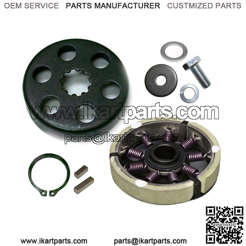 The clutch can be inboard or outboard mounted with no changes needed. The bushing should be oiled or greased when you are through racing for the day. If the track is real dusty or if you just lubed your chain, it should be cleaned. Use 30 weight oil on your finger and just coat the bushing after you have cleaned out the drum. When you oil your chain, do it with the engine off and after you are done racing for the day. The clutch draws in air through the holes in the drum to keep the shoes cool. Any over spray of the oil from your chain is going to end up in the drum and on the shoes which will vary the engagement consistency until it burns off. DON’T OVER OIL THE BUSHING OR THE CHAIN before the race, wait until the end of the day. Very little oil is going to penetrate into the bushing or the chain, most of it will be spun off and it will effect the clutch performance.
