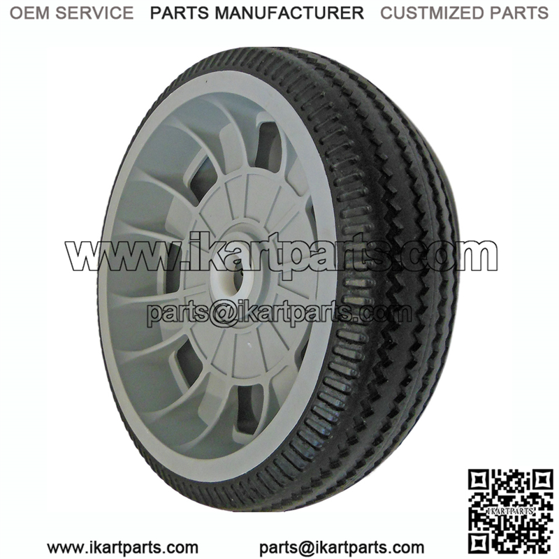 Plastic wheel assembly for carts, wagons, mowers and more.