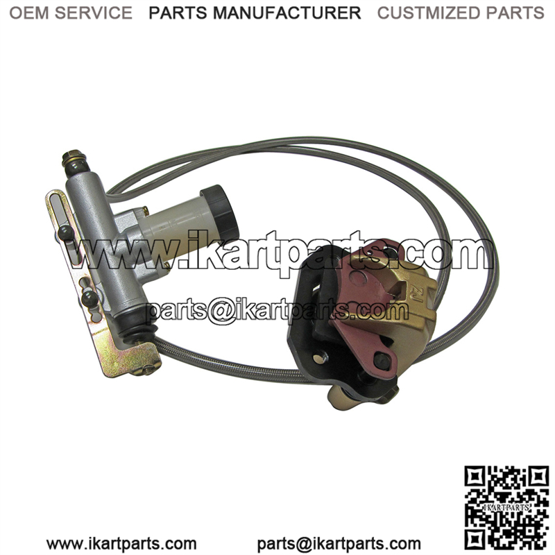 This hydraulic brake caliper set up used on many Hammerhead, Twister, and Trailmaster mid sized go karts. This kit comes ready to install, pressurized with Dot3 brake fluid. No need to hassle with bleeding brakes. Save time and money with this kit!