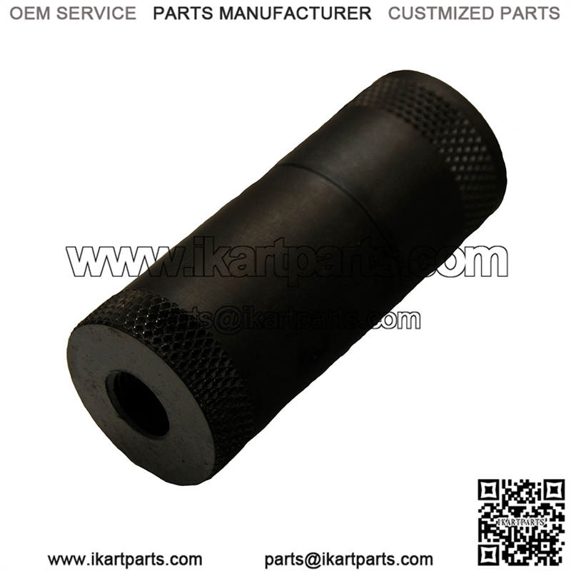 This is a Go Kart Adapter, metric 14 mm x 1.5. The adapter is crafted from durable aluminum with a black powder coat finish. The adapter screws directly onto the spindle.
