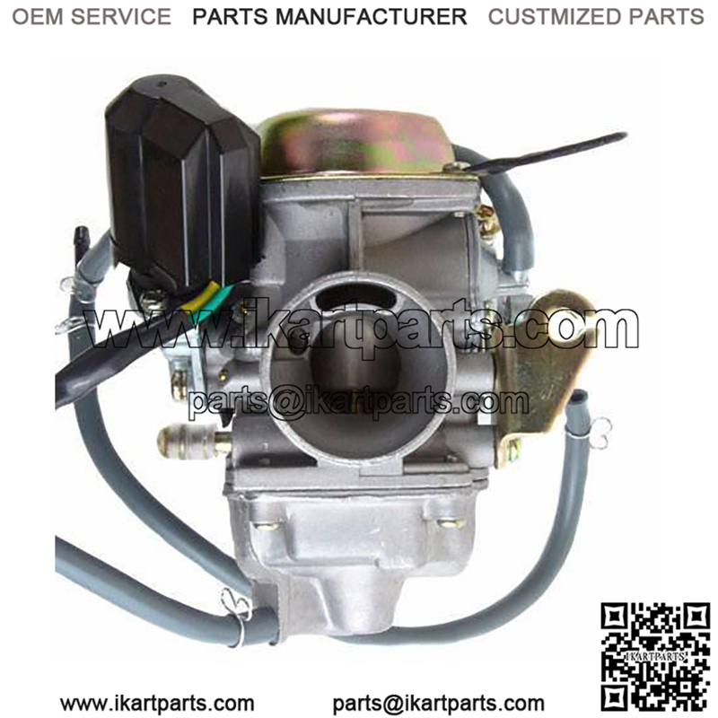 This Chinese PD24J electric choke carburetor is a replacement part for many 4-stroke GY6 125cc & 150cc Chinese Scooters, ATV’s, & Go Karts.