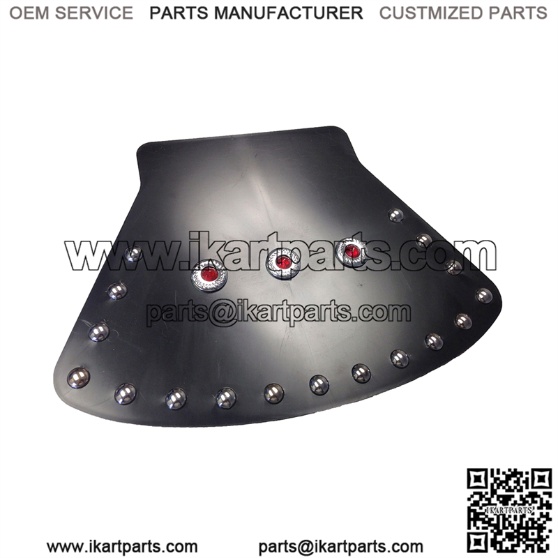 Decorated with chrome studs around the edge & three red jeweled chrome studs in the center.