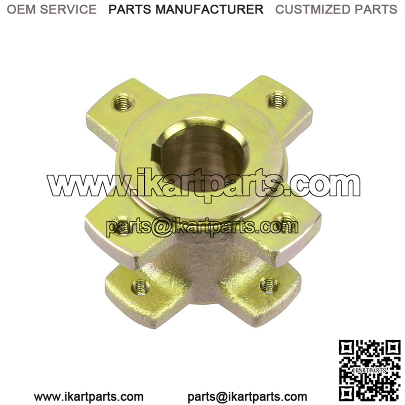 This sprocket mounting hub is used on the rear axle of the Coleman KT196 and the HiSun HS200GK go-karts. It may be used on other makes and models. Please use pictures and descriptions to determine fit.