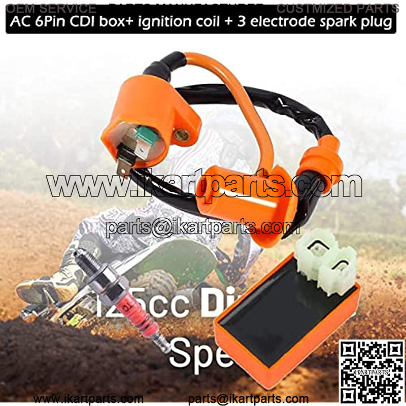 ????Package including:1pc AC 6 pin CDI box+ 1pc high-quality ignition coil + 1pc 3 electrode spark plug