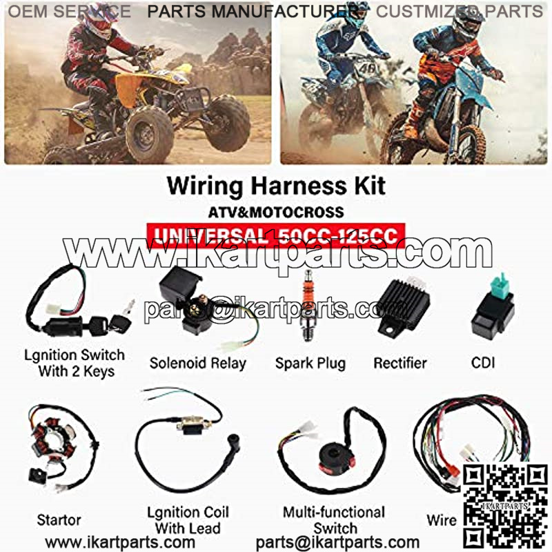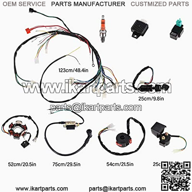 Universal Wiring Harness Kit: The replacement wire harness kit is suitable for most Chinese electric start upright engine 50cc 70cc 90cc 110cc 125cc ATV, Coolster, Buggy, Dirt Bike, Go Kart, Motowork, Kawasaki KLX, Quad Bike, Dune, Pit Bike, 4 Wheelers, Scooter, Taotao.