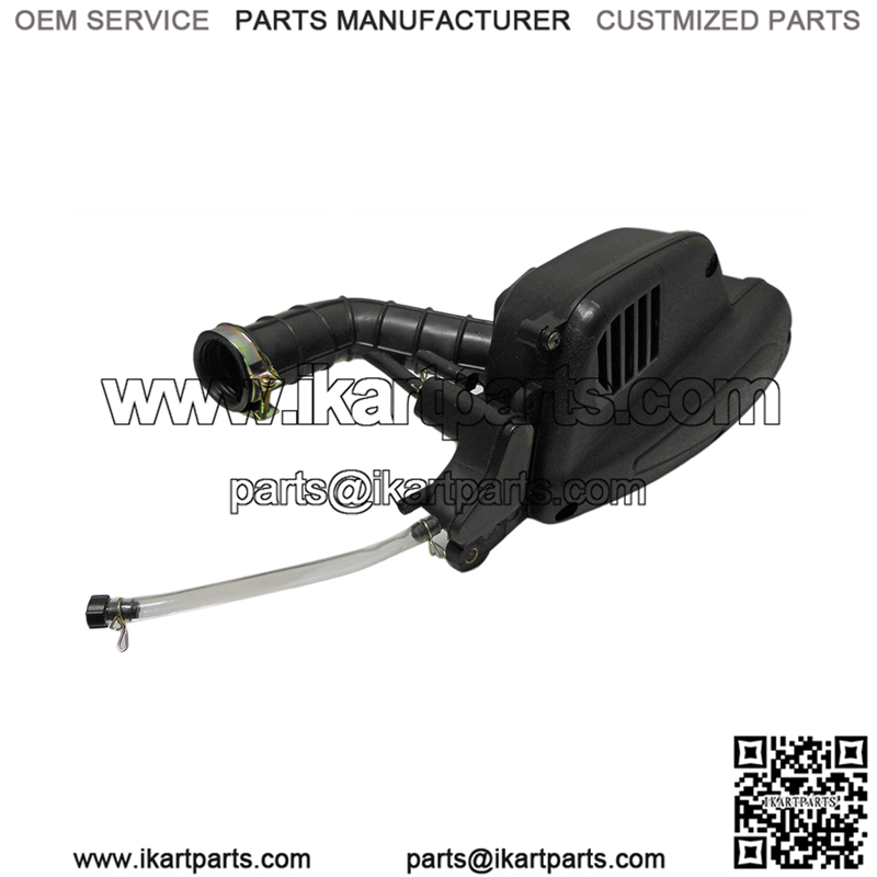 This air filter housing is compatible with many GY6 150cc go karts, scooters, & ATVs