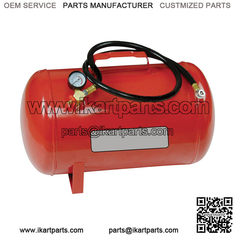 This 5 gallon steel portable air tank is great for at home, at the track and fits our Super Lift Kart Stand Air Tank Holder perfectly.