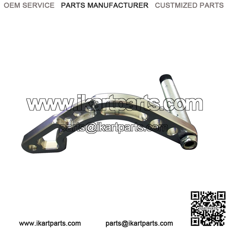 This is a high quality CNC Machined Aluminum pedal mount works perfect for racing and fun karts. It can be used for the gas or brake pedal.