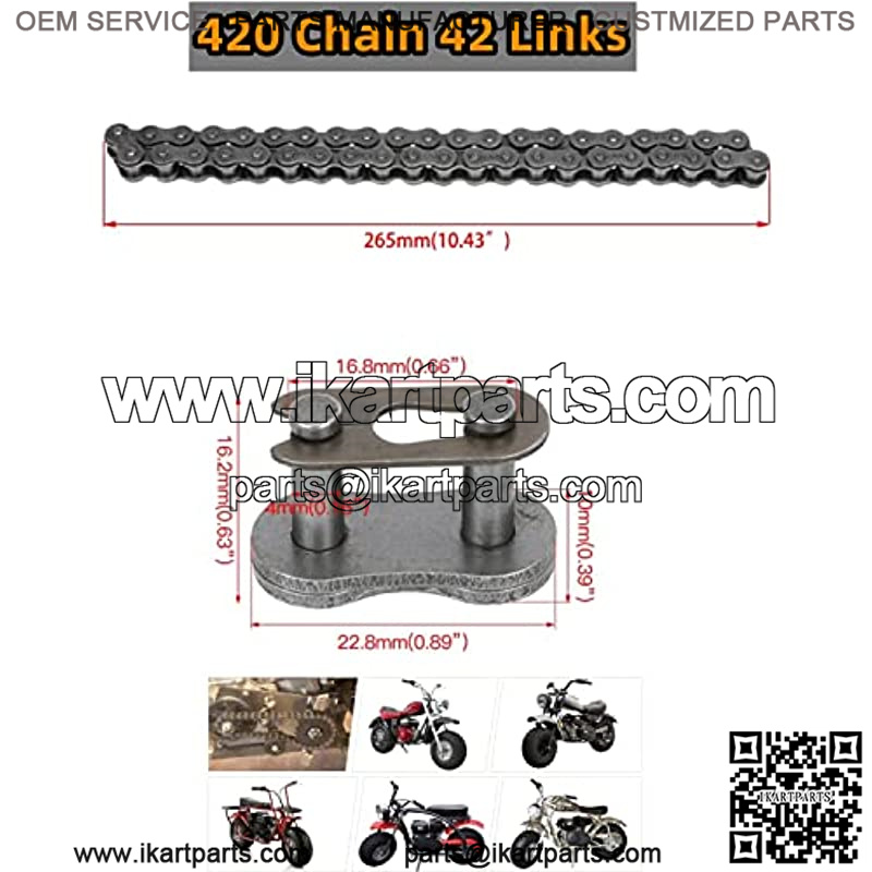 Mini Bike 420 Chain Fit Ct200u Ct200u-ex Bt200x Accessories Front and Rear Drive Chains Chain Adjuste(42 Link+90 Link)