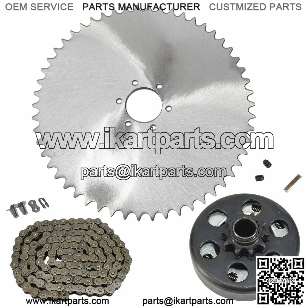 This kit replaces the light duty #35 chain with the #420 heavy duty chain making it less likely that the chain will fly off of the sprockets.