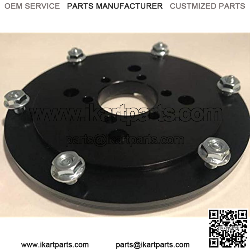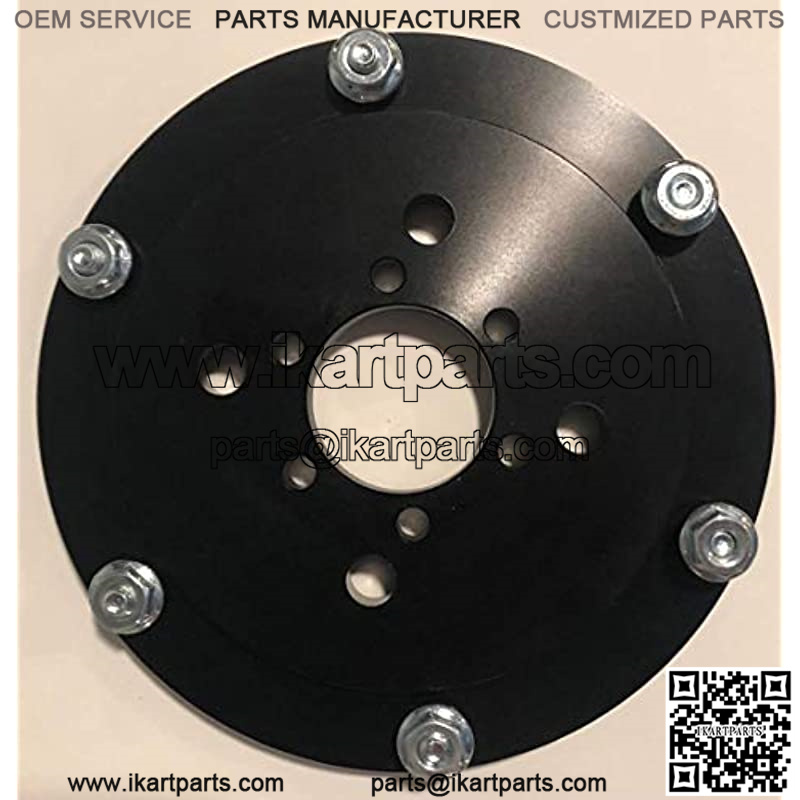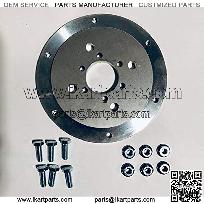 Black in color. Sprocket not included. This sprocket hub Is great for converting your mini bike or go kart to the split sprockets. This will allow quick gear ratio changes with out removing the axle. This sprocket adapter fits the Monster Moto 80cc/105cc, Motovox, Doodlebug and Baja mini bikes with the 6 bolt hole pattern on the wheel. It will also fit any wheel that has a 2 7/8″ hole pattern for the existing sprocket. Made from 6061-T6 aluminum OD: 5.875″ Center Hole: 1.47″ Machined Shoulder: 4.562″ Outside Hole pattern for sprocket: 5.25″ with 1/4-28 threaded holes 4 Hole pattern: 2.875″ 6 Hole pattern: 1.968″ 6 1/4-28 bolts and nuts included.
