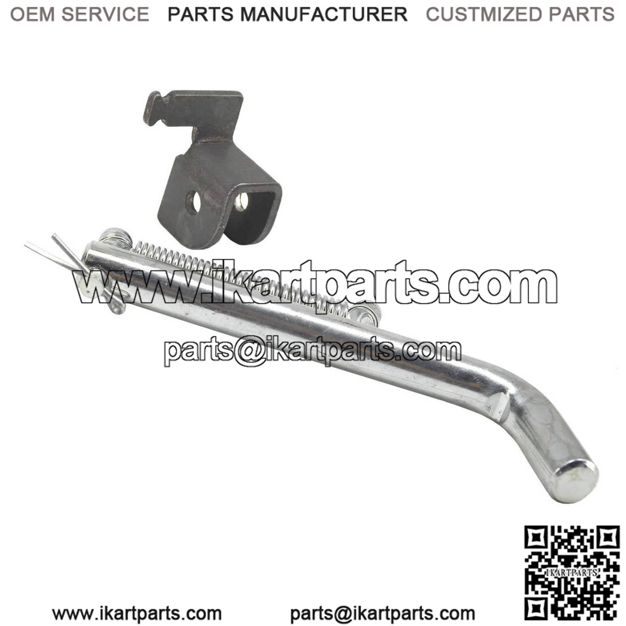 5″ long chrome plated vintage mini bike kick stand kit with spring and weld on bracket.