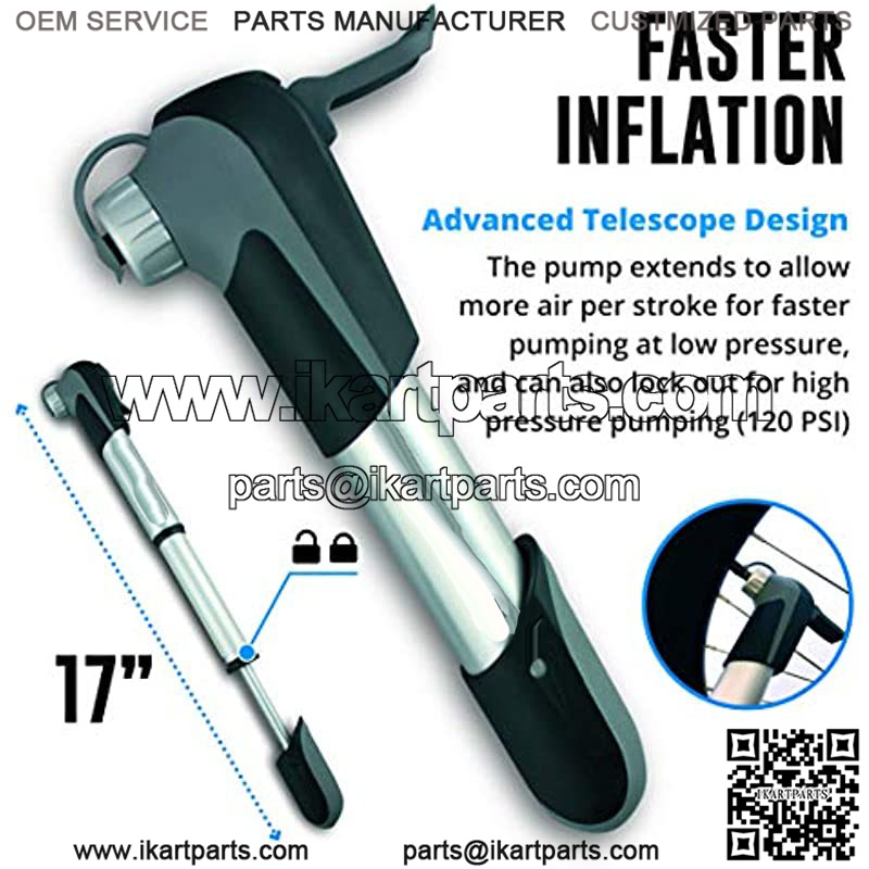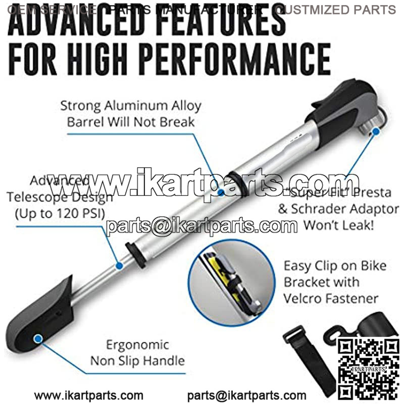 / Mini Bike Pump & Glueless Puncture Repair Kit – Presta & Schrader Bicycle Pump – 120 PSI Tire Pump for Road & MTB – No Valve Changing Needed