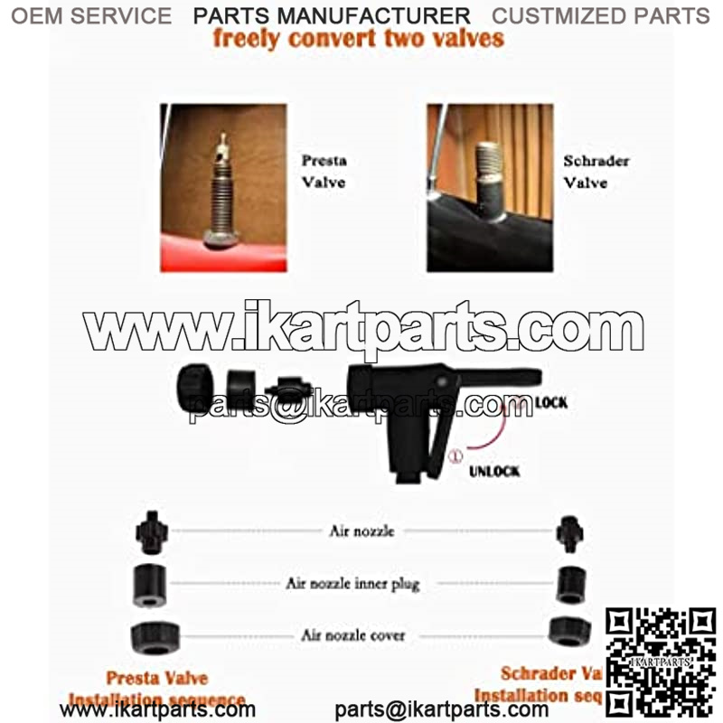 lightweight Gem S pumps feature a convertible head for Presta or Schrader valves, and a patented high volume/high pressure air switch makes for easy inflation.10 years of professional bicycle inflator manufacturing plant, material guarantee, durable Length: 11inch Pressure: 100+ psi / 7+ bar High volume / high pressure air switch Weight: 6 Ounces Warranty: 5 years