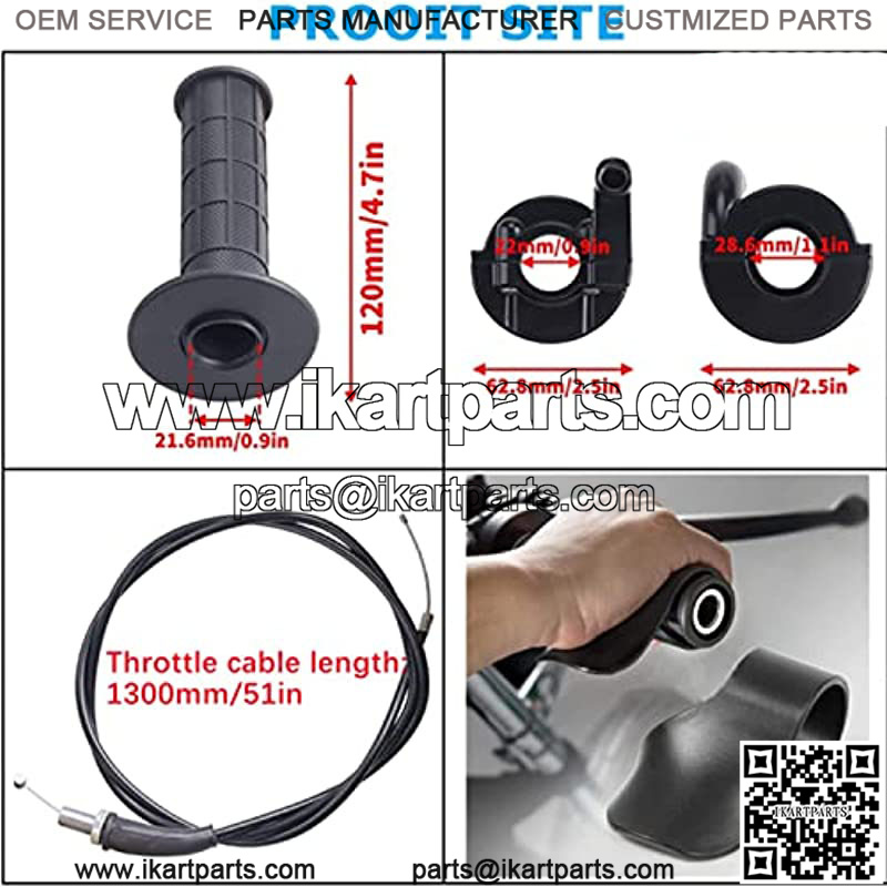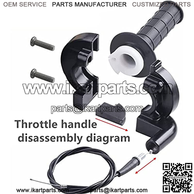 This handlebar replacement set includes??1* 1.3 m throttle line , 2* 7/8″ left and right handles , 1* throttle aluminum block,with 2pcs high quality screws .The throttle cable assembly is easy to install, Material: Made of high quality of plastic and aluminium alloys, anti-corrosion and rust.