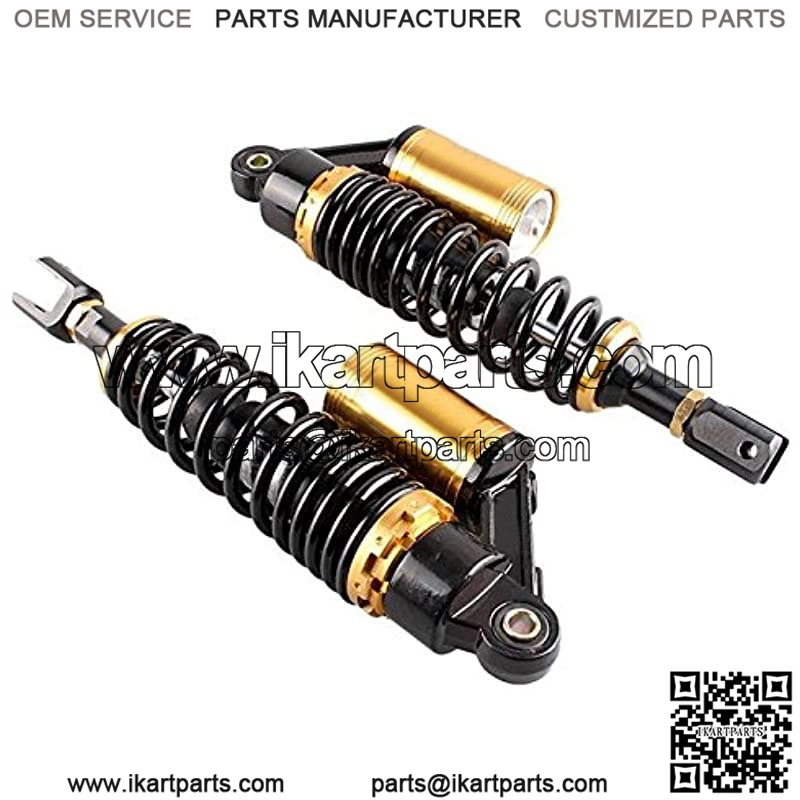 A pair of rear motorcycle shock absorbers, made of quality aluminum and stainless steel;Pressure can be adjusted by springs or air (gen); Operation of the coil-over springs and air cylinder is helpful to reduce the shock.Shock Absorber bottom/ends type: Straight ForkNo instruction included, professional installation recommended.Universal fit for most 340mm Motorcycle Shock Absorber For Honda/Yamaha/Suzuki/Kawasaki;Dirt bikes, Gokart, ATV, Motorcycles and Quad.Item Specific : Condition: Brand new Color: As picture show Material: Solid Steel + Aluminum Alloy Installation Type: Clevis/Straight Fork Fitment: Universal Fit. Work perfectly and will be compatible on most 50cc, 75cc, 90cc, 125cc, 150cc, 250cc, 300cc Street bikes, Dirt bikes, Gokart, ATV, Motorcycles and Quad Total Length:370mm (14.5″)Length of Eye to Clevis Eye Core:340mmEye Diameter(with bushing): 12mmEye Diameter(with bushing removed): 16mmClevis Maximum Tensile Strength: 2,000 KgfSpring Thickness: 8mmSpring Width: 60mmWork