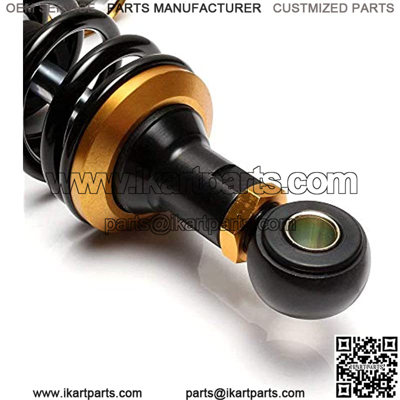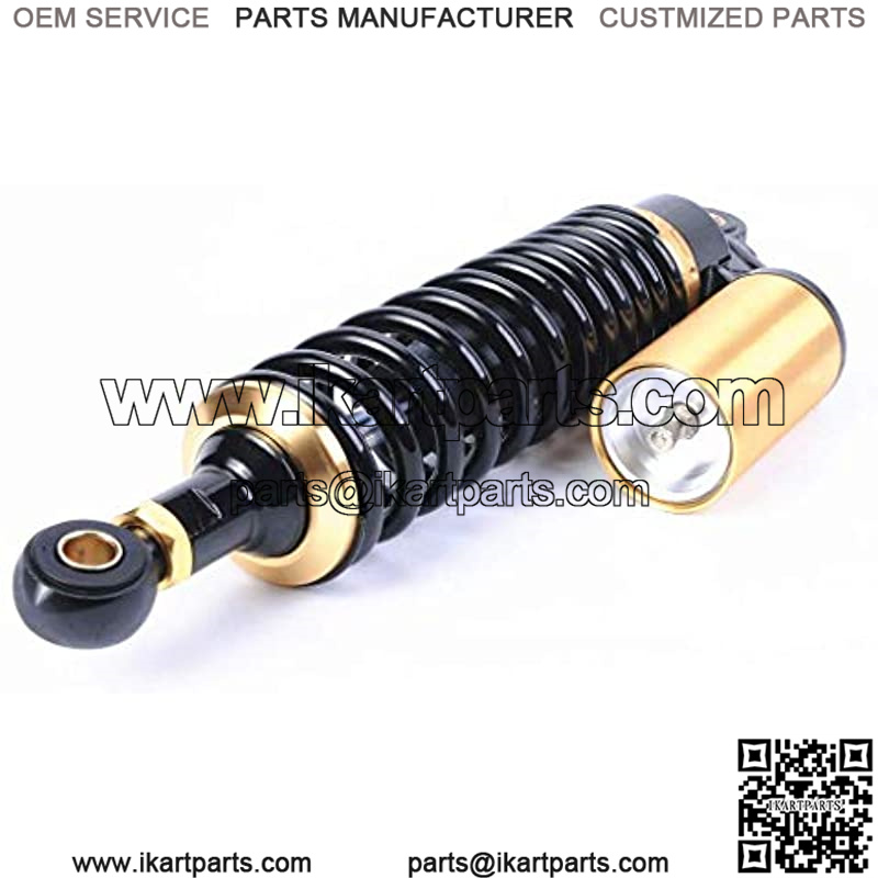 Dimension: Length of Eye to Eye Core: 280mm/320/340 for choose Eye Diameter(with bushing): 12mm Eye Diameter(Without bushing): 16mm Eye Thickness: 21mm Eye Maximum Tensile Strength: 2,000 Kgf Spring Thickness: 7mm Spring Width: 50mm Working Stroke: 46mm Spring Stiffness: 110 kg Maximum load: 150 kg (330 lbs) Air Reservoir: Adjustable Factory Air Pressure: 0.4 Mpa Maximum Air Pressure: 0.5 Mpa Fitment: Universal fits most 150cc~750cc street bikes, Karting(Go kart), Scooters and Moped Quad (ATV) with shocks eye to eye distance. Great choice for replacement, style upgrading and bike modification. (Please kindly check the dimension above before placing order.) Package includes: One Pair Shock Absorbers 2 x Wrench 2 x Bushing Installation Manual is not included Recommend qualified mechanic fits or checks after the fitting of this product.