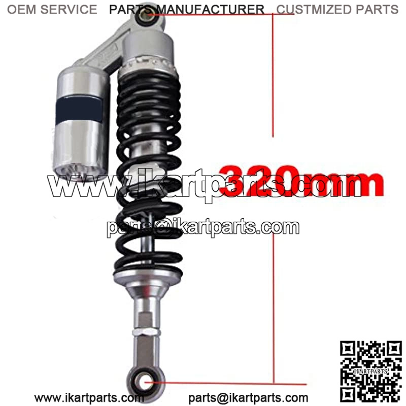 Motorcycle shock absorber universal fit for most vehicles, like Honda/Yamaha/Suzuki/, etc. The diameter of the round hole at the bottom is 12mm. Fit bikes with shock absorbers of 320mm eye to eye distance.