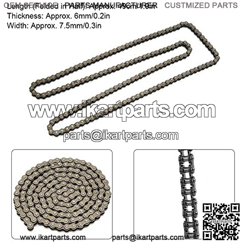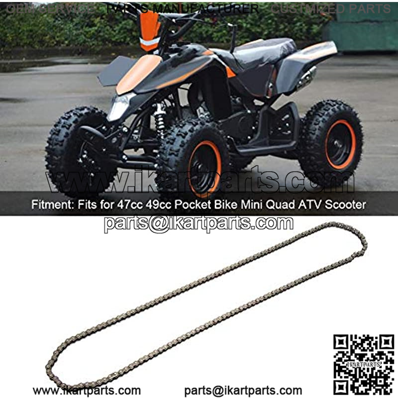 ??Suitable For??The chain is suitable for 47cc 49cc bikes, ATV and scooter, it’s a practical accessory. Original standard, direct replacement for the old or broken one.