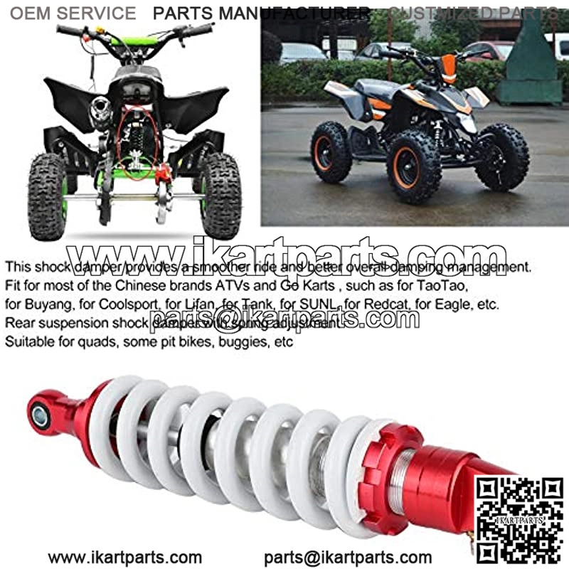 Brilliant Compatibility:Shock Damper Fit for most of the Chinese brands ATVs and Go Karts , such as for TaoTao, for Buyang, for Coolsport, for Lifan, for Tank, for SUNL, for Redcat, for Eagle, etc.Universal Rear Shock Damper with spring adjustment, suitable for quads, some pit bikes, buggies, etc.