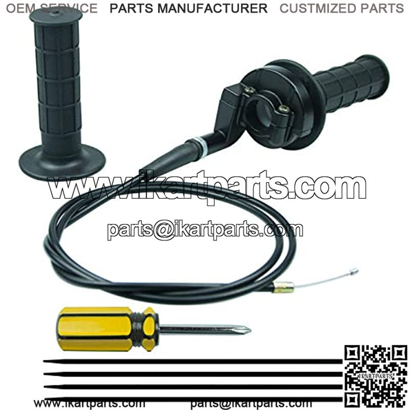 This set includes: 1 x left hand grip with throttle tube installed, 1 x right hand grip, 1 x throttle housing clamp, 1 x 51” throttle cable, 1 x screwdriver, 4 x cable ties.