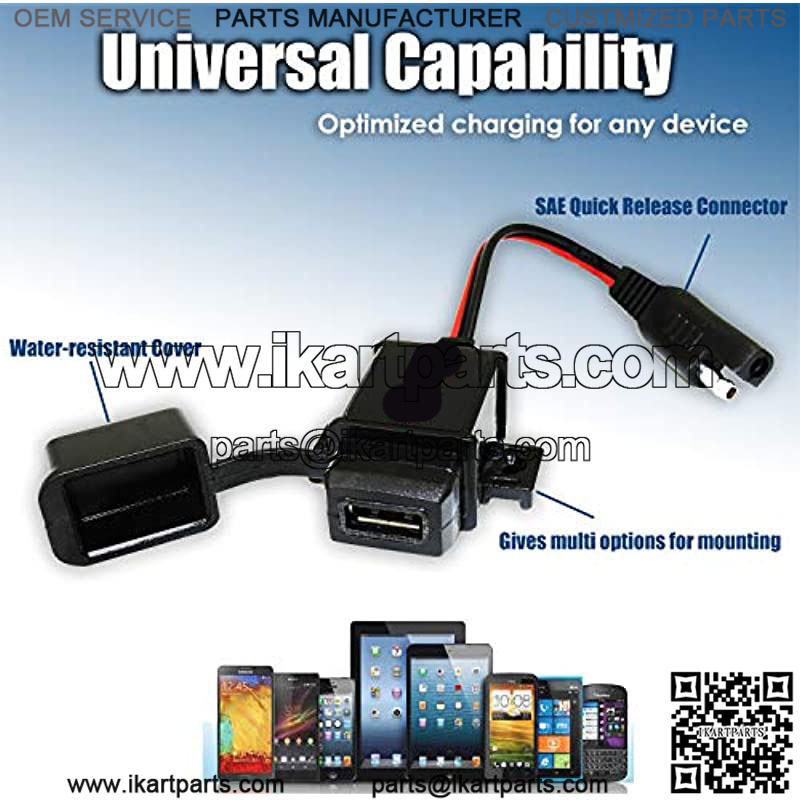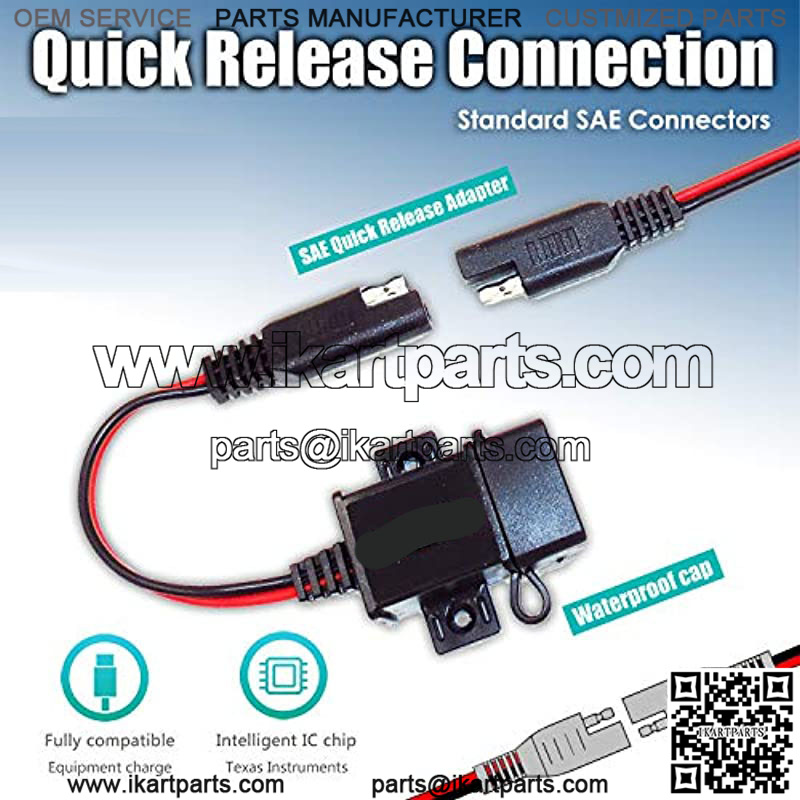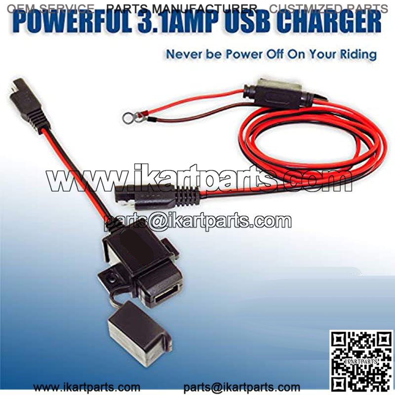 Universal Application: – Input Voltage: 12-24V; Output: 5V, 3.1Amp. It can charge just about any phone, Tablet, GPS, camera, etc. With the SAE quick release connection design, it can work directly with your exsiting SAE pigtails on your bikes. Also the 7.5Amp fused SAE to Ring Terminal cable included in the kit can work with your battery chargers or maintainers to charge the battery conveniently.
