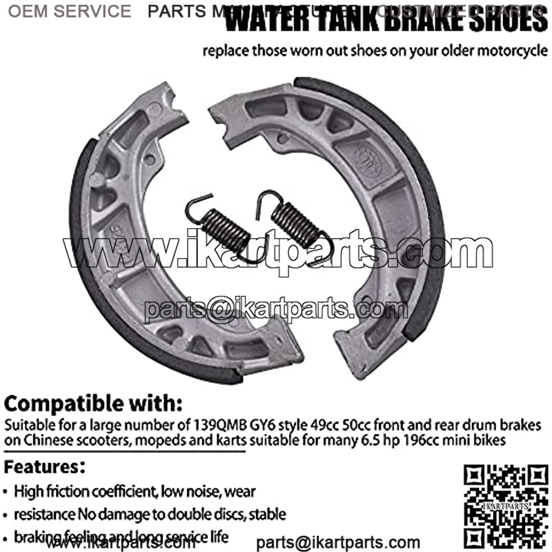 Brand New Front and Rear Brake shoe Compatible with 5.5HP Or 6.5HP Warrior, Heat Mini Baja Motorsports Mini Bike. Also works with Harbor Freight 6.5 engines and many other 5.5-6.5 HP Honda clone engine scooters. Please check the pictures and dimension to match yours before purchasing.