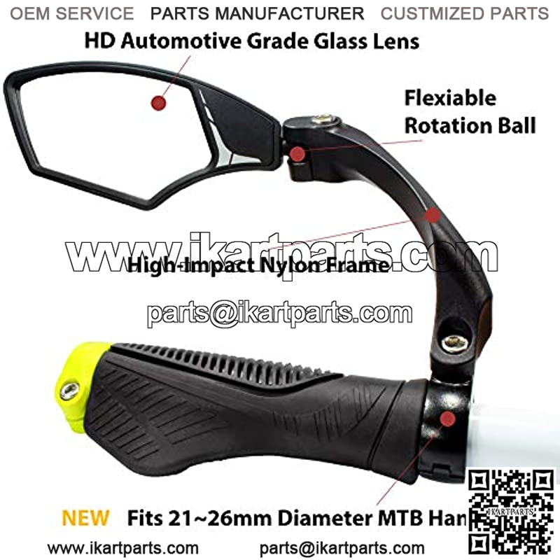 New Handlebar Bike Mirror, HD Blast-Resistant, Safe Crystal Clear Glass Mirror, Adjustable Rotatable Bike Mirror, Rearview Mirror, Bicycle Mirror,HF-MR095